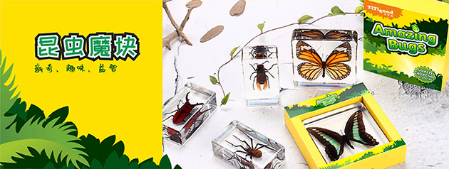 昆蟲(chóng)魔塊系列產(chǎn)品,是由昆蟲(chóng)包埋標本配套觀(guān)察工具組成。標本晶瑩通透、精致小巧,昆蟲(chóng)自然真實(shí)、栩栩如生,激發(fā)孩子的無(wú)限好奇。通過(guò)對昆蟲(chóng)標本的觀(guān)察、認知,培養孩子的興趣愛(ài)好、觀(guān)察能力和探索能力。