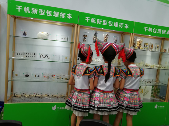 展會現(xiàn)場-千帆展示了DIY學生實驗制作解決方案產品、新型包埋標本、中小學標包埋標本、學前教育益智等系列產品