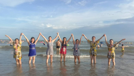 18日中午,千帆全體員工乘大巴車到達本次旅游的第一站----防城港。在享用美味的海鮮午餐之后到酒店辦理入住手續(xù),下午前往白浪灘。這次出行正值2018中國•北部灣開海節(jié)在白浪灘舉行開海儀式,熱鬧非凡。大家在原生態(tài)海鮮嘉年華暢享海鮮美食,在淺海區(qū)游泳戲水,在沙灘上嬉戲,讓腳板盡情與細沙摩擦!藍天、白云、海浪、沙灘,伴大家一起度過了難忘的藍色之旅!