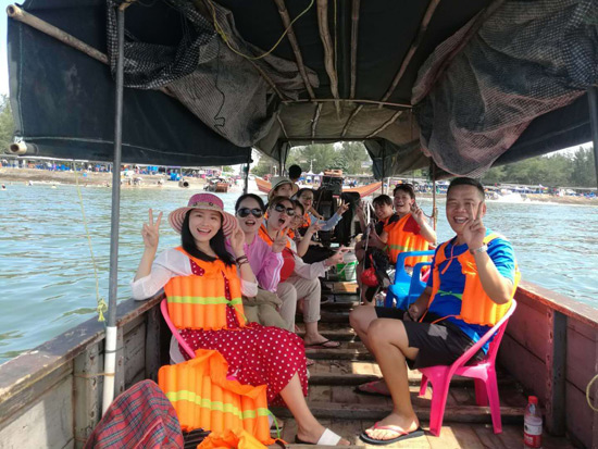 第二天一早,有的結伴登上仙人山看潮漲、看日出。早餐之后,大家集體前往位于中越邊境口岸城市東興市江平鎮(zhèn)萬尾,綠島、長灘、碧海、陽光、馬尾松樹林、哈亭(唱哈的地方)構成一道美麗的風景線,還能體會到一些原始漁民的氣息。大家兵分兩路,一路人馬在漁民的帶領下,乘坐漁民船出海撒網捕魚,感受捕魚的樂趣,體驗漁民的生活,暢游海灘風情、觀賞海上風光;另一路人馬則赴東興口岸及國貿商城,感受異國風情,購買異國特產。